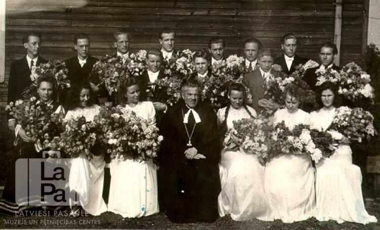 Jaunieši ar mācītāju iesvētībās