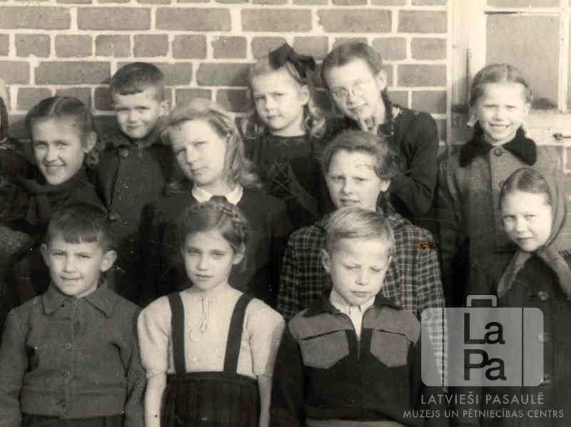 Bērnu grupa no 4. mājas stāv pie ķieģeļu sienas Špakenbergā pie Gēsthahtas (angļu zonā) 1948. gada vasarā. Otrajā rindā, otrā no kreisās: Silva Pankare (pr. Zariņa). Trešajā rindā, otrā no kreisās: Astrīda Pankare. Par šo gadījumu Silva Zariņa (dz. Pankare) stāsta: "Brīvajā laikā šī grupiņa izdomāja un spēlēja visādas spēles. Nezinu, vai šodienas jauniešiem, kam nav nekā, ir tikpat laba izdoma, jo mums nekad nebija garlaicīgi."
