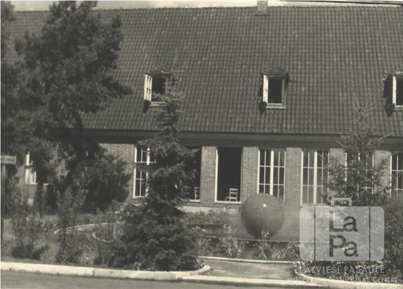 Divstāvu mūra ēka Dedelstorfas nometnē (angļu zonā). Ēkā dzīvoja bijušie leģionāri un invalīdi, un tas bija arī angļu virsnieku klubs. Ēkā Otrā Pasaules kara laikā atradās angļu virsnieku klubs un bijušais vācu "vislabākais" virsnieka kazino. Ēkas priekšā ir apstādījumi, zemi skujkoki un apaļa strūklaka. Vairāki ēkas logi ir atvērti.