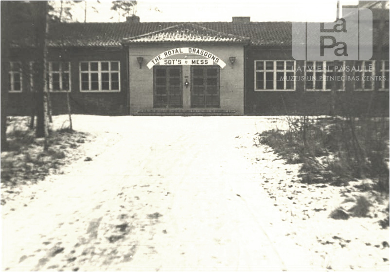 Daugavas Vanagu kluba vienstāvu ēka ar dakstiņu jumtu Dedelstorfas nometnē (angļu zonā). Ēkā Otrā Pasaules kara laikā atradās vācu seržantu klubs. Virs ēkas ieejas durvīm ir uzraksts: "THE ROYAL DRAGOONS / SGT'S MESS". Priekšplānā ir apsnidzis ceļš.