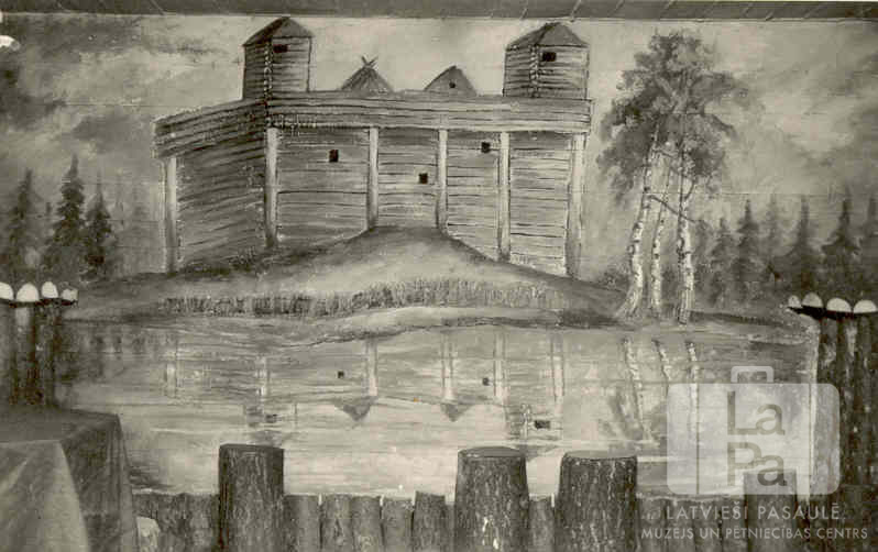 Sienas dekorācija Burtnieku 71. skautu vienības mītnē Junkersa nometnē Kaselē (amerikāņu zonā) 1947.–1948. gadā. Uz sienas ir attēlota koka pils ar bērziem blakus un dīķi priekšā. Priekšplānā no dēļiem ir veidots žogs. Mītni bija iekārtojuši paši skauti: Juris Kalve, Uldis Rozenbergs, Gatis Plūme, Elmārs Vītoliņš, Valdis Vāgners un Heinrichs Puķīte.