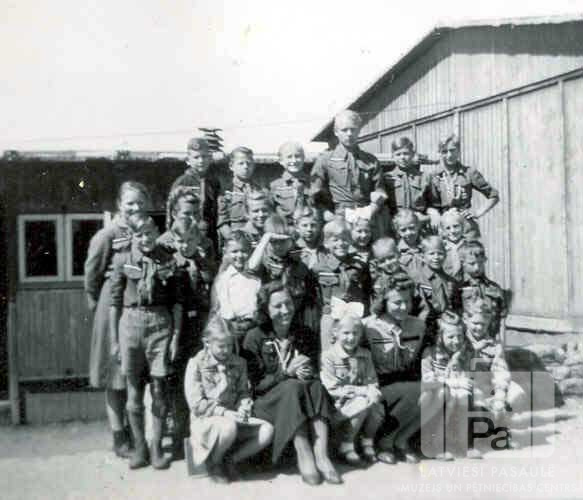 Fotogrāfijas dāvinātāja rakstītais atmiņu stāsts par bēgļu gaitām un bēgļu nometnēm: "Latvijas skauts, darbā trauc Kad dzimtene sauc! Atsaucoties šim aicinājumam, 1945. gada 16. septembrī vadītājs E. Virziņš un virskopnieks Ilmārs Paupe Ansbachas DP nometnē pie Nīrenbergas nodibināja Lielvārdes Lāčplēša 15. skautu vienību. 1945. oktobrī Ansbachas DP nometnē darbību iesāk Lielvārdes Laimdotas 44. gaidu vienība. Šīs fotogrāfijas un informācija ir no Lielvārdes 15. skautu vienības dienasgrāmatas." "Pie Ansbachas Lielvārdes 15. skautu un Lielvārdes 44. gaidu vienībām 1946. gada 11. februārī nodibinājās skautu un gaidu nodaļa Rothenburgas DP nometnē."