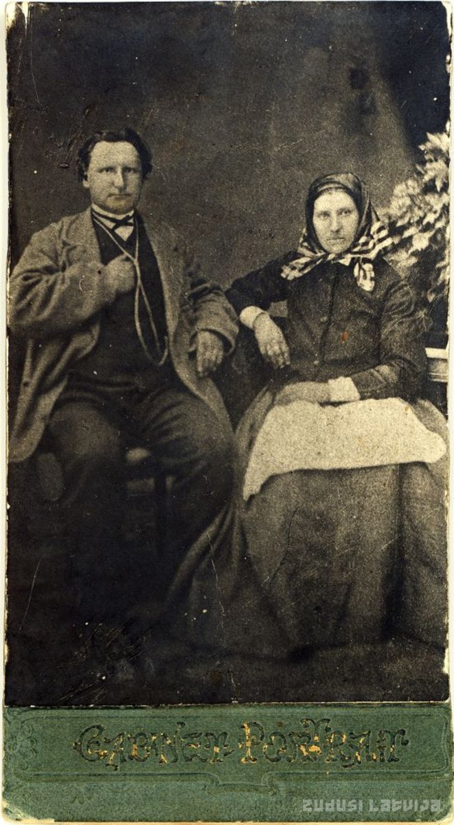 Andžs Sniedze ("Prātnieks") ar sievu Madi Sniedzi jaunībā. A. Sniedze aptuveni 25 - 30 gadu vecumā, M. Sniedze aptuveni 21 - 26 gadu vecumā Vecpiebalgā