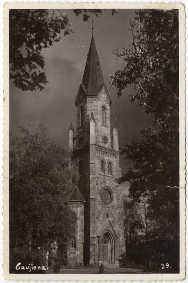 Gaujienas luterāņu baznīca 1935. gadā. Ēka pastāvēja laika posmā no 1891. gada 31. oktobra līdz Otrajam pasaules karam, kad tika uzspridzināta Baznīca celta pēc arhitekta Jāņa Brauna (1859-1929) projekta. Mūra baznīca ar 700 sēdvietām, iesvētīta 1892. gada 31. oktobrī. Celtne izmaksāja 22 500 zelta rubļu. No tiem 12 000 rbļ. deva Gaujienas muižas īpašniece Šarlote fon Vulfa, dzimusi Reiterna (1826-1904). Muiža deva arī būvmateriālus, pagasti – darbaspēku. Pirmajā Pasaules karā dievnams nav cietis. Otrajā Pasaules karā Gaujienas baznīca gāja bojā. No tās palikusi tikai akmeņu kaudze. 1994. gadā pabeigti jaunās baznīcas pamati. Vēl līdz 2004. gadam nekas nav mainījies, celtniecības darbi pārtraukti, draudze pulcējas Trapenē – Mikužu saiešanas namā "Gaujienas baznīca, līdzīgi Cesvaines, Velēnas un Lejasciema baznīcai, celta neogotikas stilā. Tā bija no kaltiem akmeņiem celta garenbūve ar poligonālu altāra apsīdu un piebūvētu torni ar augstu astoņstūra smaili. Fasādēs starp logiem un toņa stūros izvietoti kontrforsi. Torni greznoja uz kontrforsiem novietotie tornīši. Celtnes dzegu akcentēja arkatūras joslas. Fasādēs gotiskas smailloka arkas ar smailloka sandrikiem