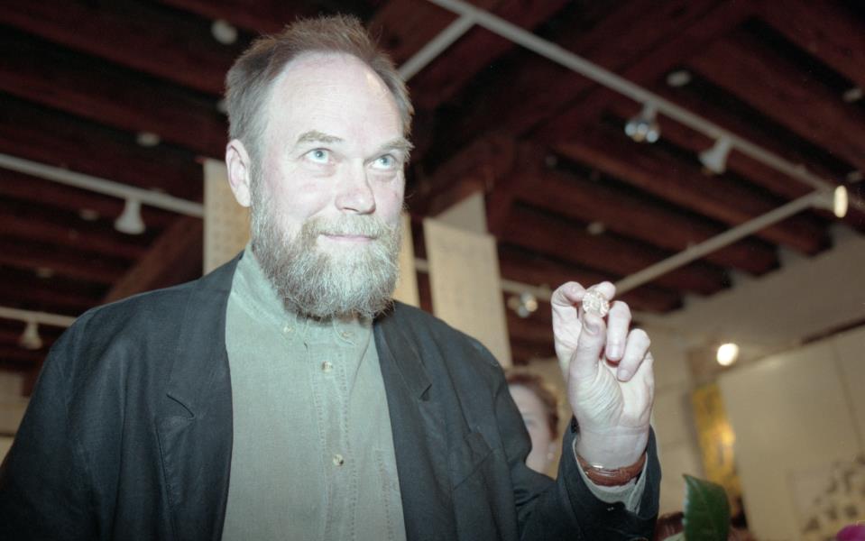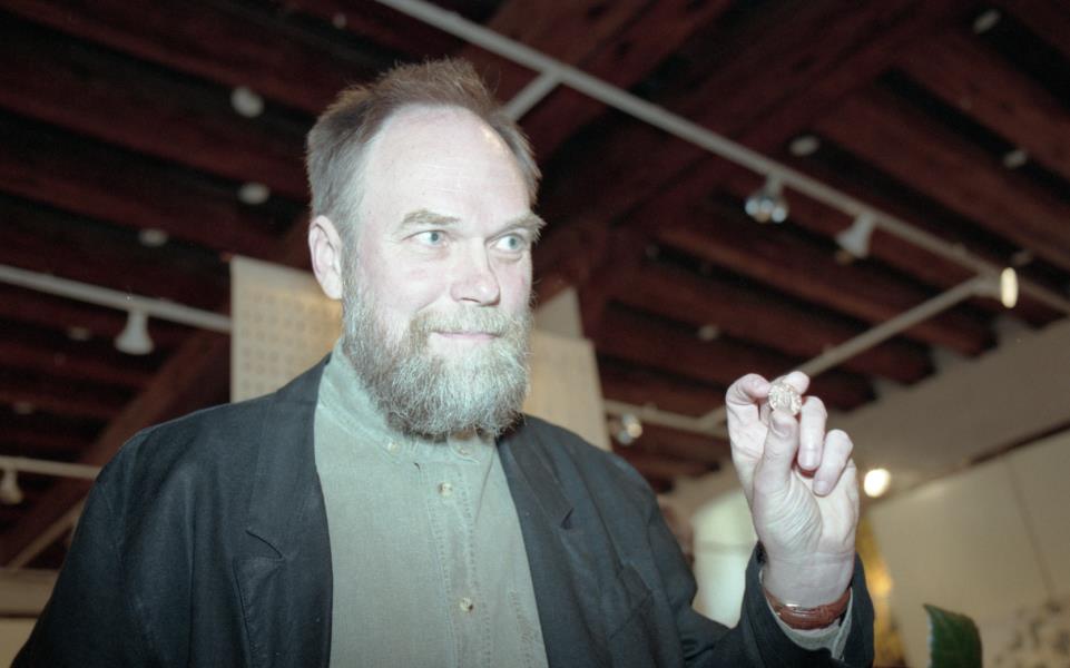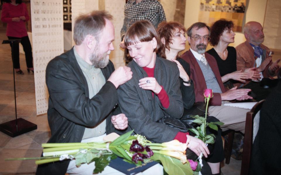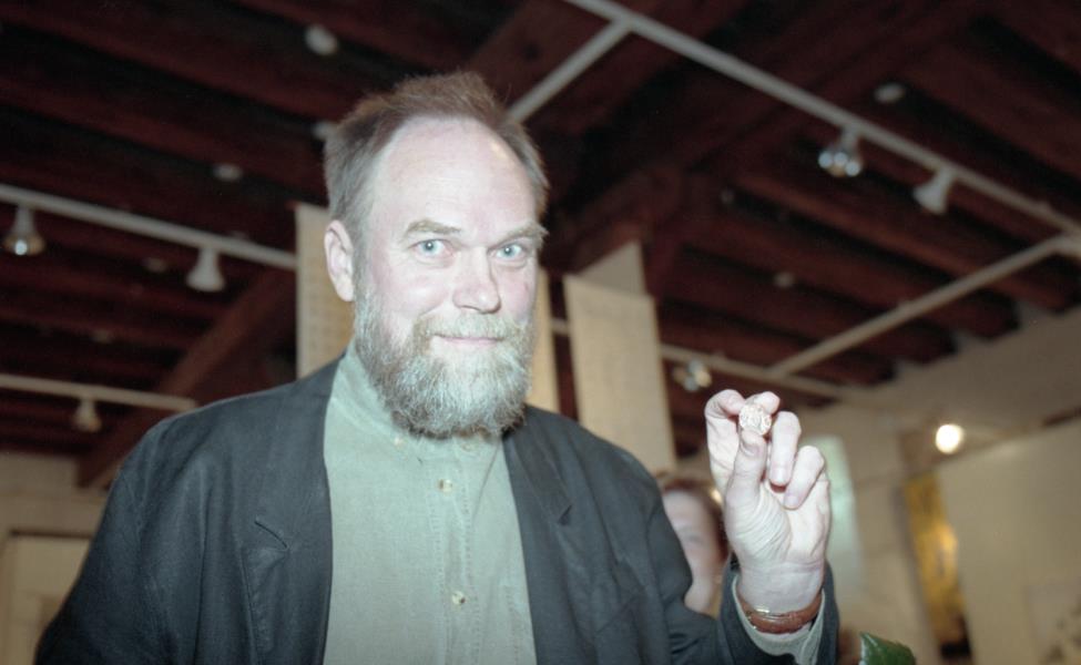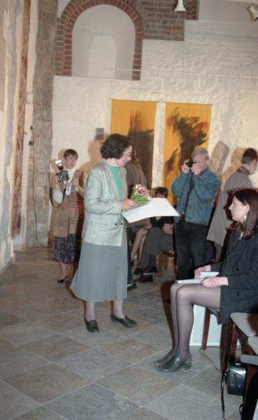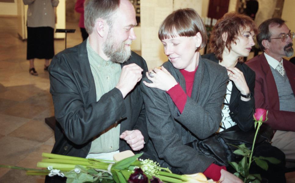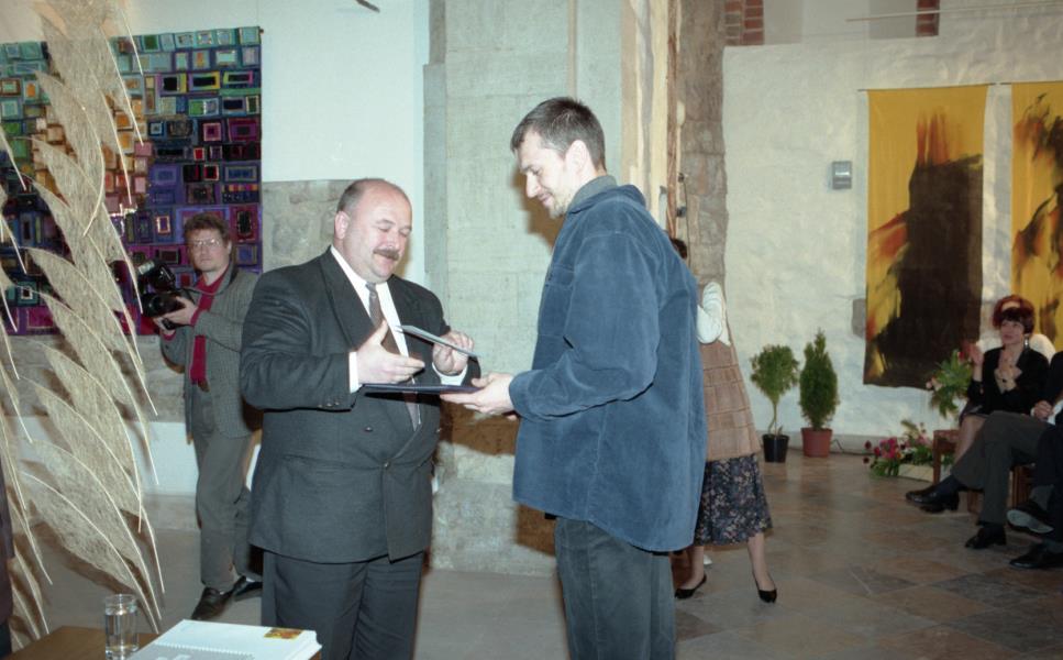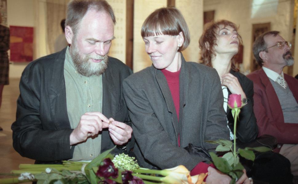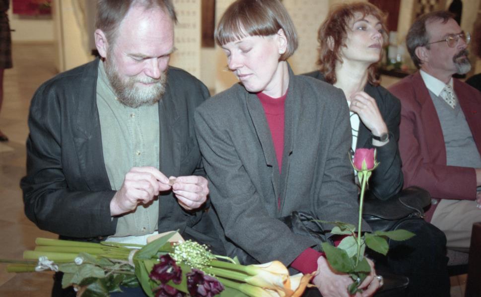 Mākslinieku savienības medaļas pasniegšana Ilmāram Blumbergam. Ilmārs Blumbergs