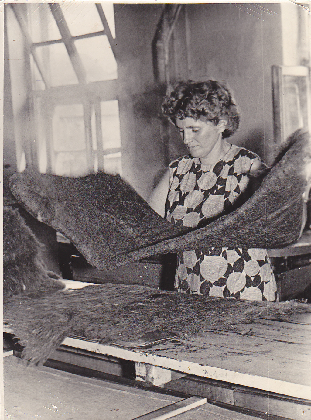 Fabrikas "Limbažu filcs" velteņu salicēja Ida Rasnača darbā. 1970. gadi.