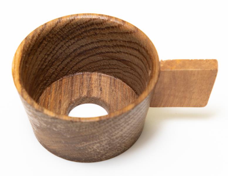 Virpots koka trauciņš ar paplatinājumu uz augšu un rokturīti sānu malā, apakšējā daļā iestrādāti apaļi caurumiņi. Izgatavotājs N.Dubrovs