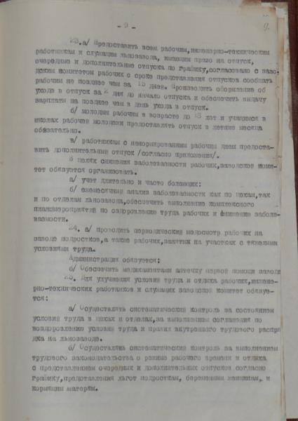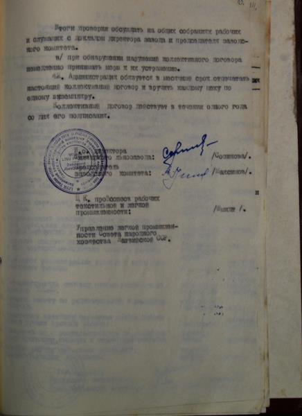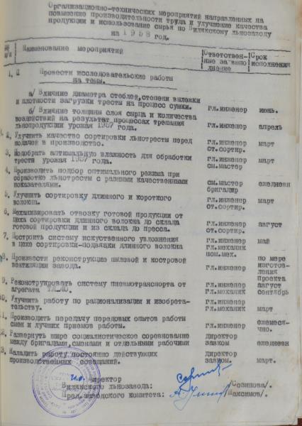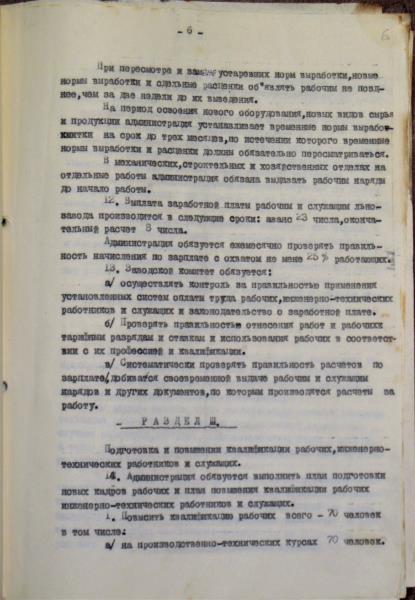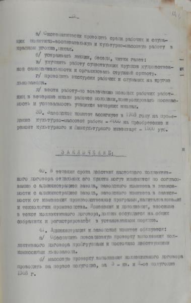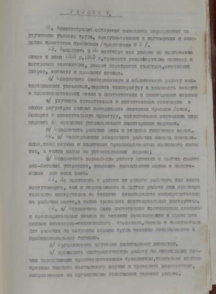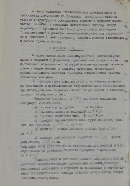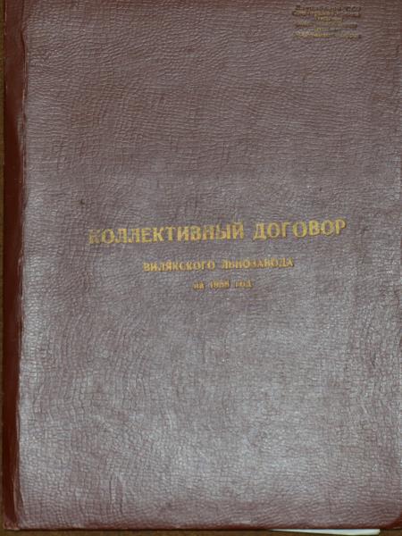 Viļakas linu fabrikas kolektīvais līgums par 1958.gadu. Līguma tiek atrunāti punkti par darba algu un izstrādes normām, par darba uzdevumiem, dzīvojamajiem apstākļiem, par darbinieku nodrošināšanu, par kultūras jautājumiem u.c.