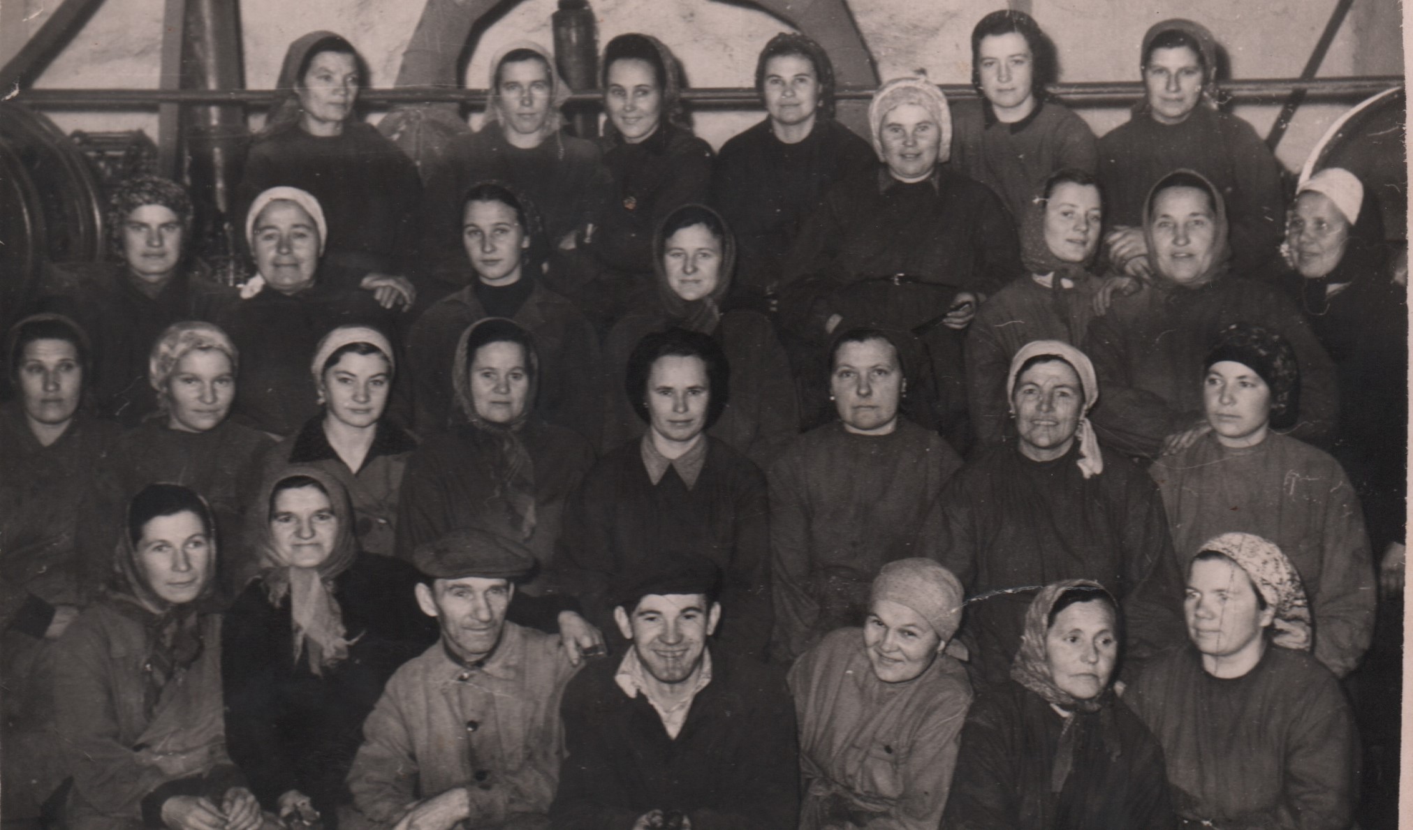Viļakas linu fabrikas maiņas strādnieki, 1.rindā no kr.Nastja, Ļuba, metinātājs Artūrs, Šura, 2.rindā 2.no kr. Nadja, Nikuļina, Jakovļeva