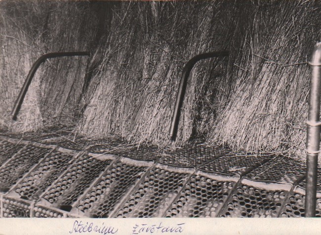 Viļakas linu fabrikas stiebriņu kaltē, caur restotiem sietiem plūst siltais gaiss, stiebri vibrē kaltējot stiebriņus