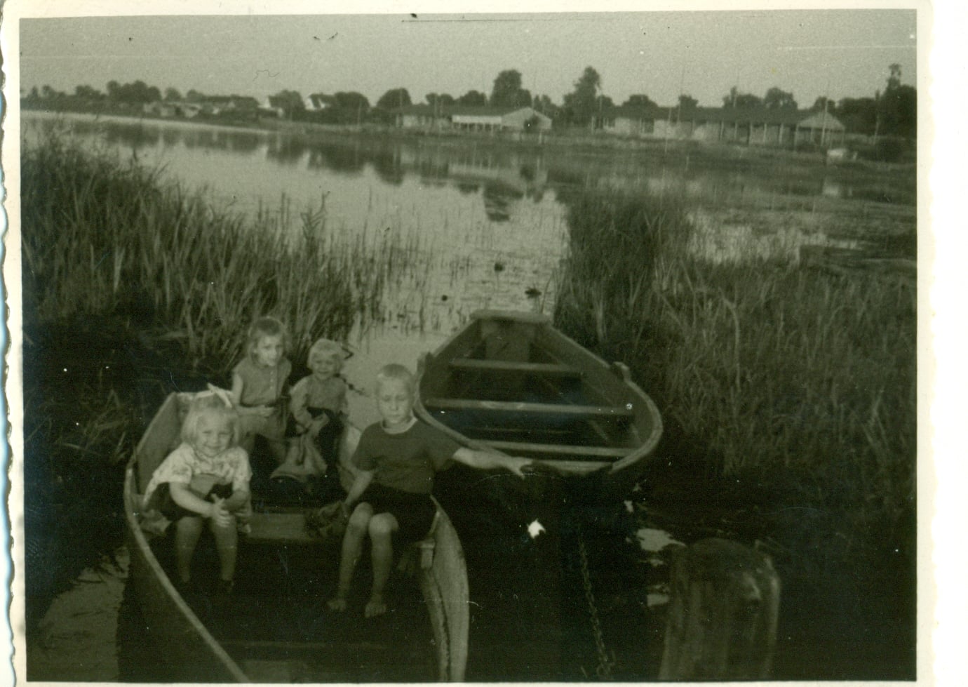 Skats uz Viļakas ezeru, ezera otrā krastā redzamas Viļakas linu fabrikas ēkas