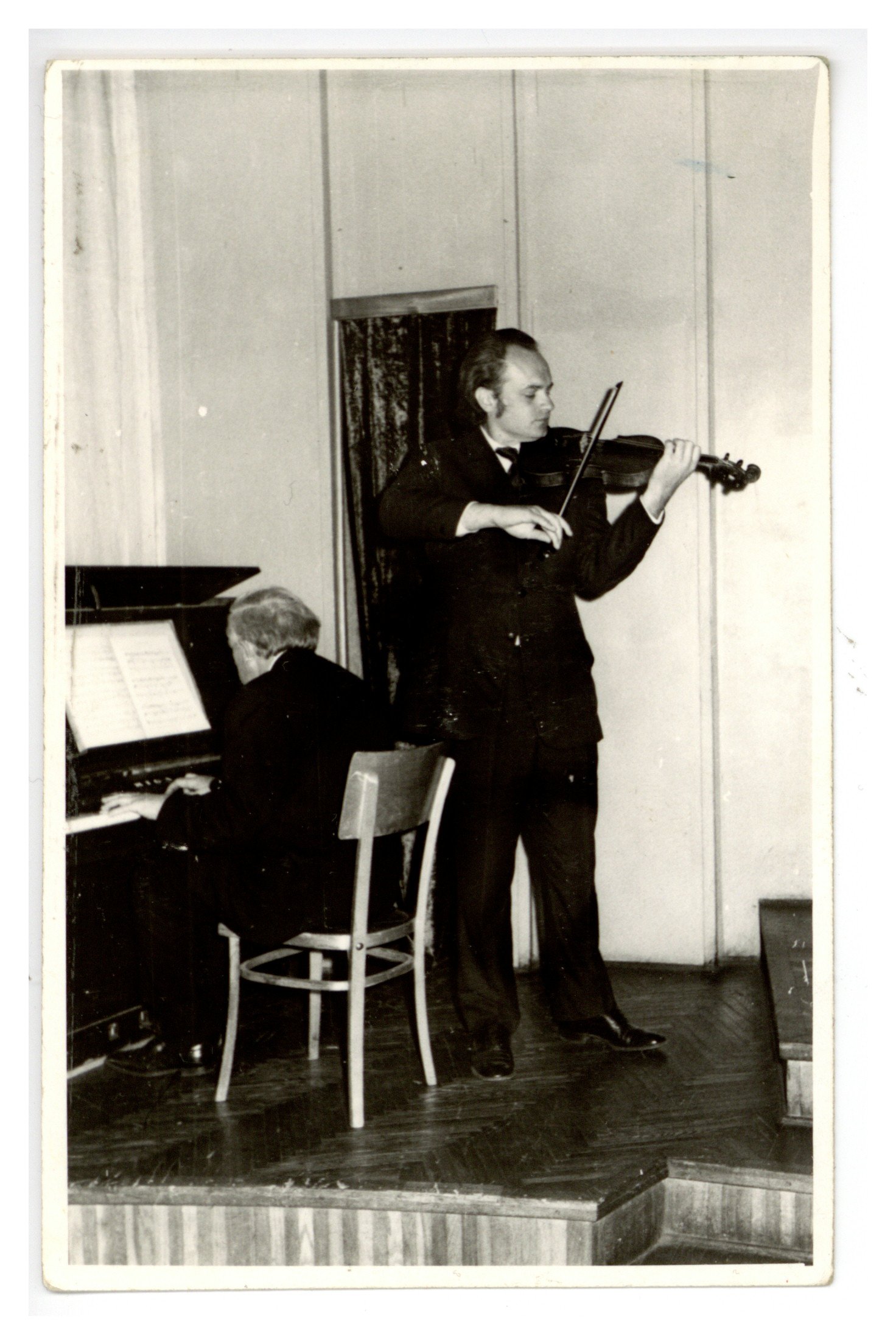 Uzstājas vijolnieks Juris Švolkovskis un pianists Jānis Ķepītis.