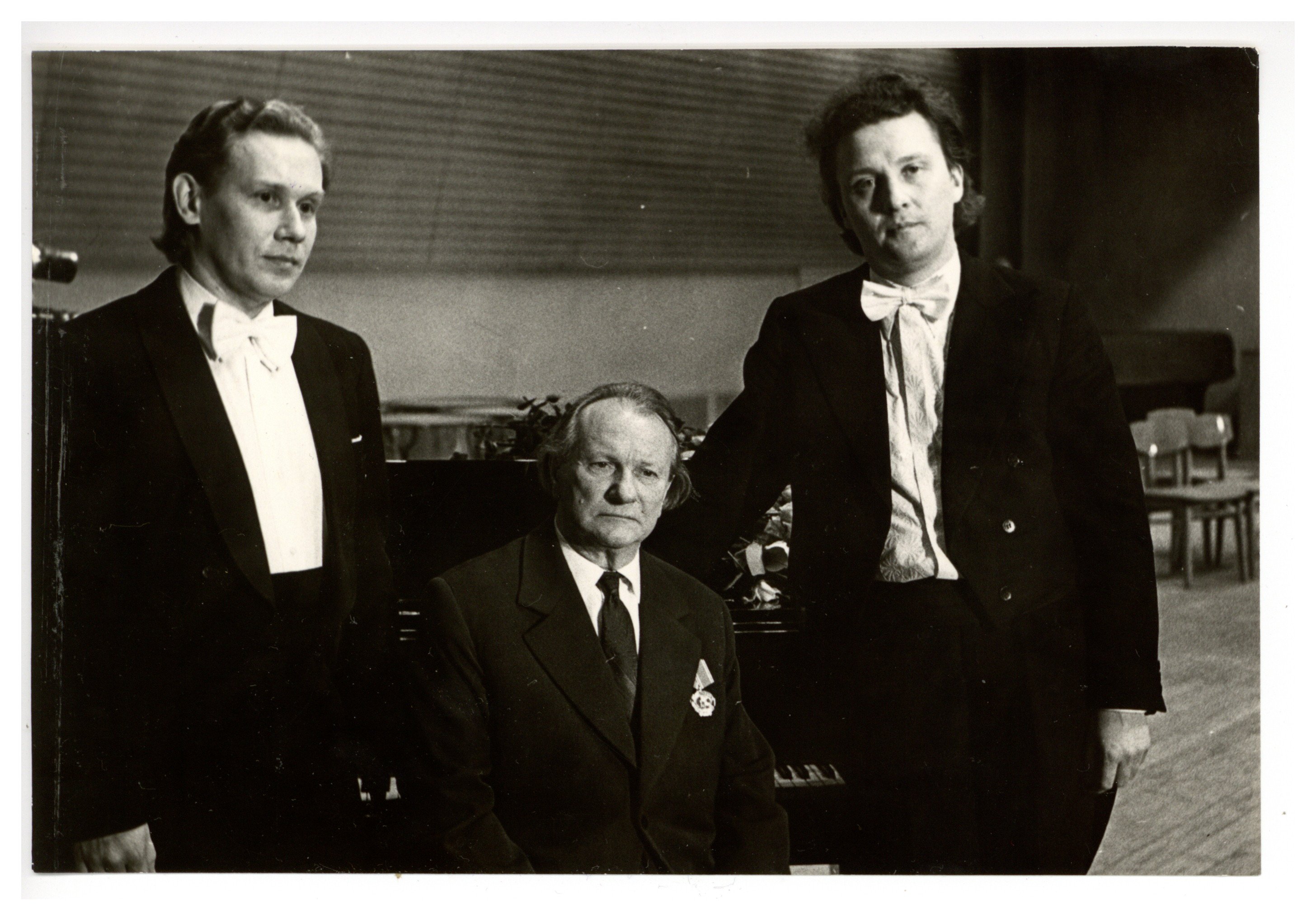 Pēc Jāņa Ivanova simfoniska darba atskaņojuma Lielajā Ģildē. No kreisās puses: Valdis Zariņš, Jānis Ivanovs, Vasilijs Sinaiskis.
