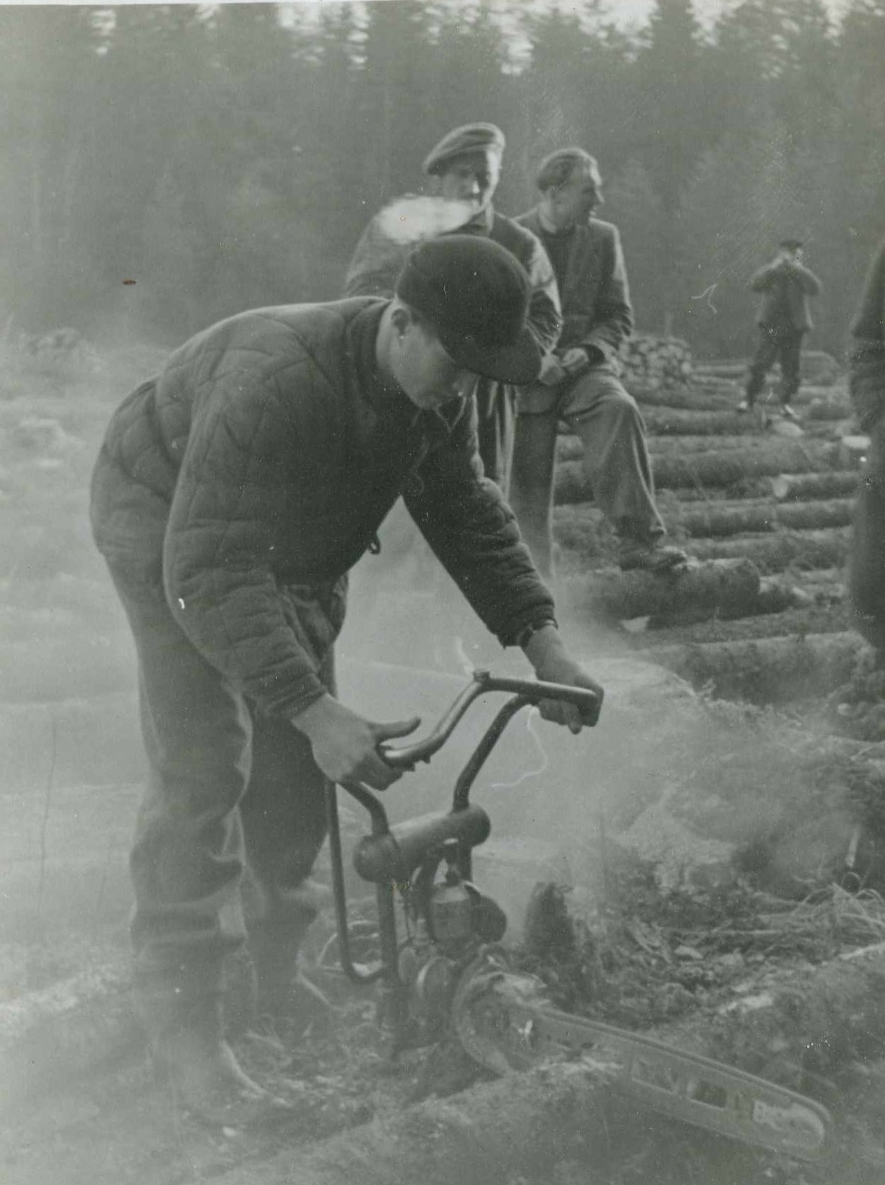 Ēriks Plūksna apgūst darbu ar motorzāģi Družba