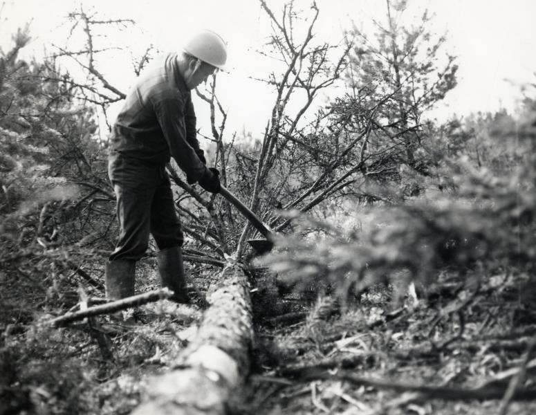 A. Drieka vadītās kompleksās brigādes loceklis Broņislavs Kozinda Antona d. atzaro koku