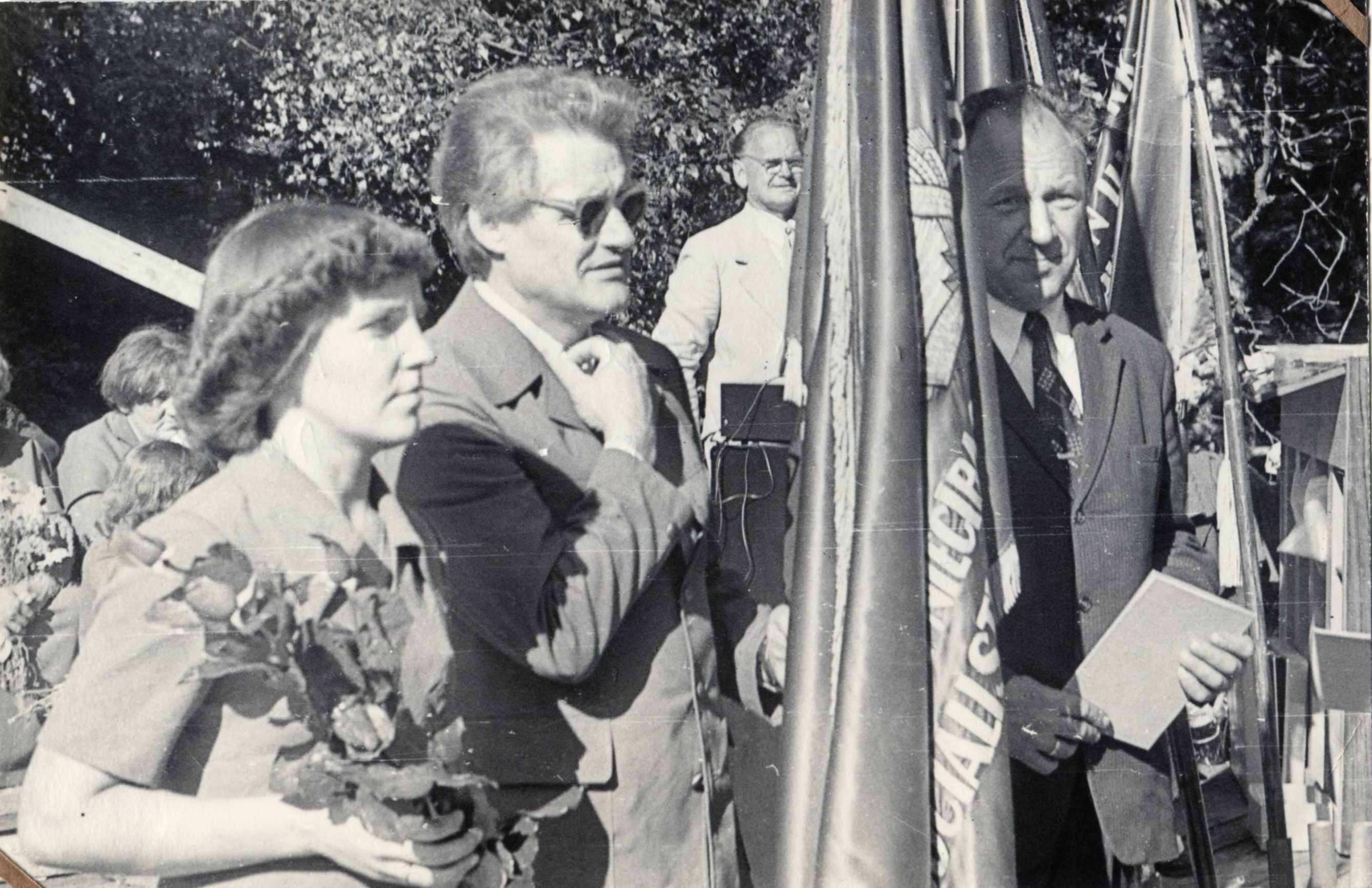No kreisās: 2. MRA Kursa ģenerāldirektors Lagzdiņš, 3. Kursa MRU PSKP LK ģenerālsekretārs Gunārs Amers