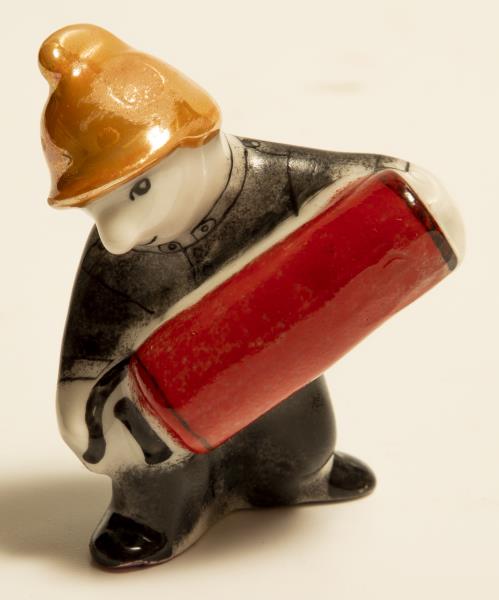 Suvenīrs: A/s "Rīgas porcelāns". Figuriņa ugunsdzēsējs ar ugunsdzēšamo aparātu. 1996. gads