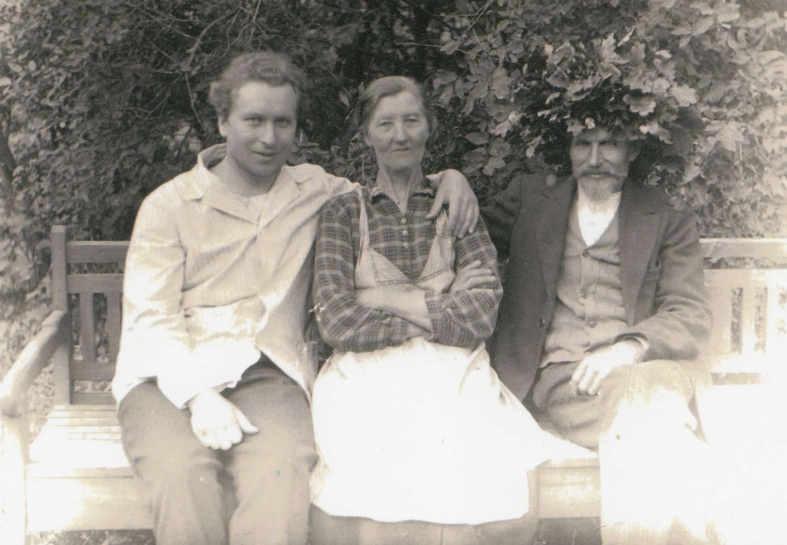 Arvīds Žilinskis kopā ar vecākiem - Ievu un Jāni Žilinskiem dzimtajās mājās "Lejas Arendzāni" Saukas pagastā.