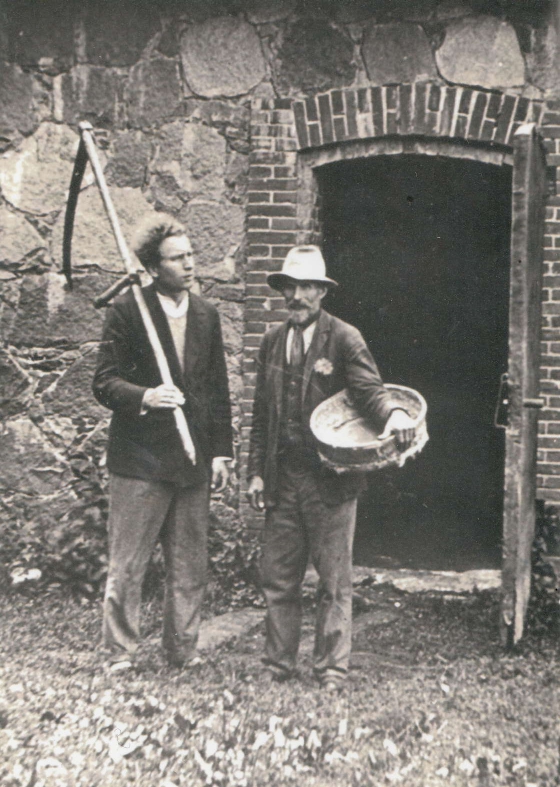 Arvīds Žilinskis ar tēvu pie klēts dzimtajās mājās