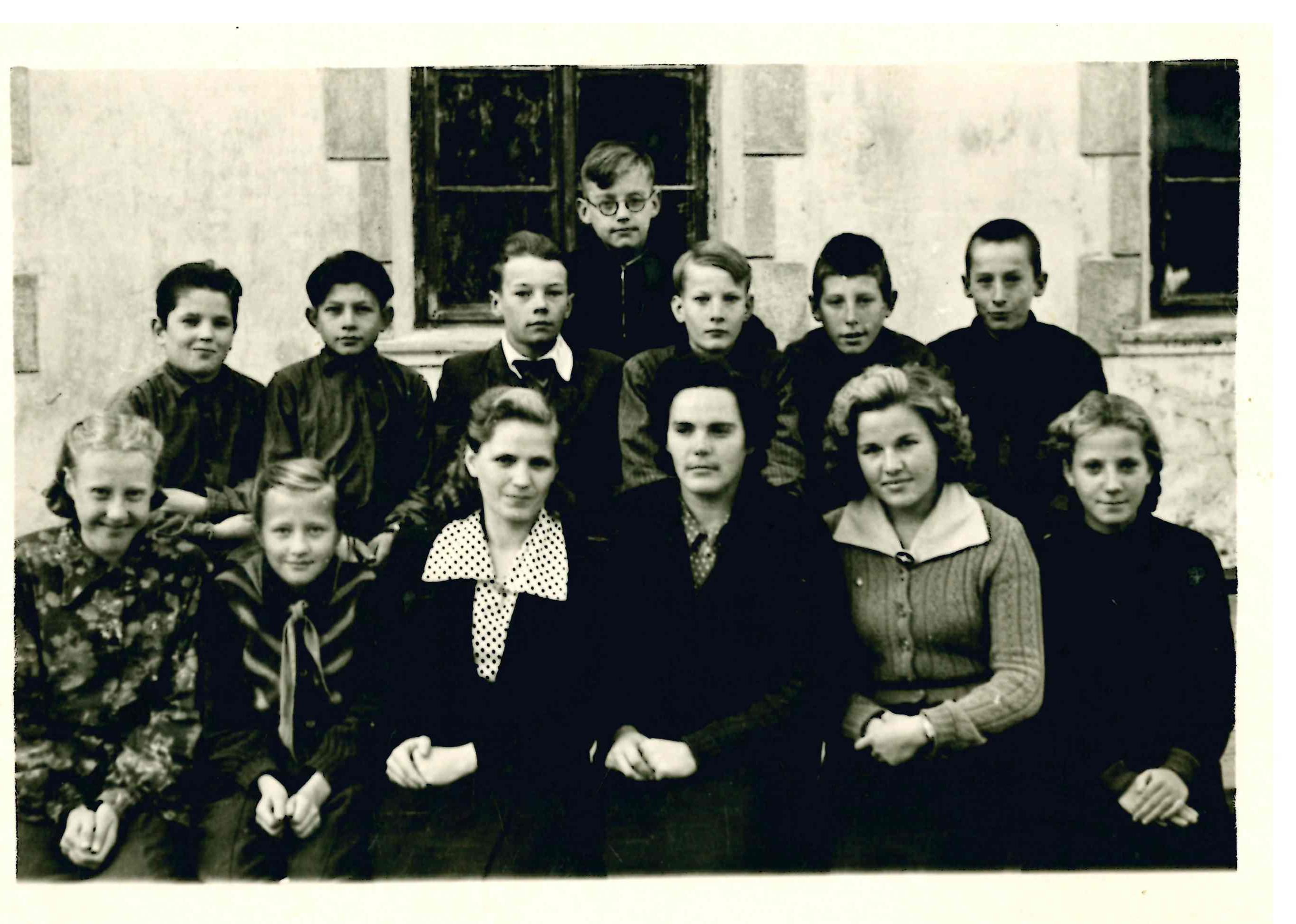 7.klases skolēni un skolotājas: Paulīna Pidika, Ausma Zirne, Dzidra Pliķēna (pirmajā rindā no labās puses).