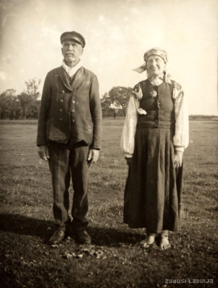 Sventājas ciema teicēji Dievins ar sievu. Bijusī Kurzemes guberņas teritorija Sventāja. 1921. gadā Latvija nodeva Palangas un Sventājas teritorijas Lietuvai