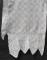 Priekšmeta apraksts: Dvielis austs trinīša drellī, velkos kokvilna, audos lins. Dvieļa abos galos piešūtas baltas tamborētas kokvilnas mežģīnes ar zvaigžņu joslas motīva rakstu un robotu malu.