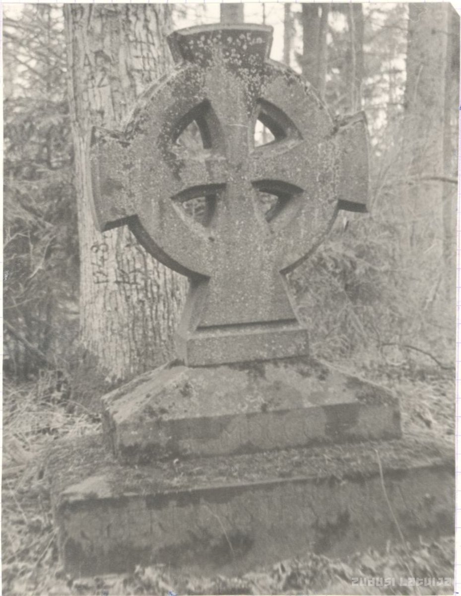 Riņķakrusts ir Latvijā ļoti rets kapu pieminekļu veids. Sens nostāsts vēsta, ka līdz 1800. gadam šajā vietā dzīvojis Ķazdangas muižas virsmežsargs Šēferis, kurš iemīlējies latviešu meitenē un uztaisījis tai bērnu. Meitene pēc tam izdarījusi pašnāvību un apglabāta Alokstes pretējā krastā, kur uz viņas kapa uzstādīts līdzīgs riņķakrusts. Virsmežsargs pēc tam nosities, jājot ar zirgu. Virsmežsarga riņķakrusts atrodas egļu mežā aptuveni 60 metrus no Skrundas–Kazdangas ceļa malas. Zinātāji šo vietu saucot par Šēfera birzi. 0,71 metrus augstais riņķakrusts novietots uz divpakāpju postamenta, kura augšējā daļā sīkā tekstā iekalts gadaskaitlis «+cMDCCC+», bet uz apakšējās «OBERFORSTER SCHAFER». Kopējais piemineklīša augstums ir 1,1 metrs