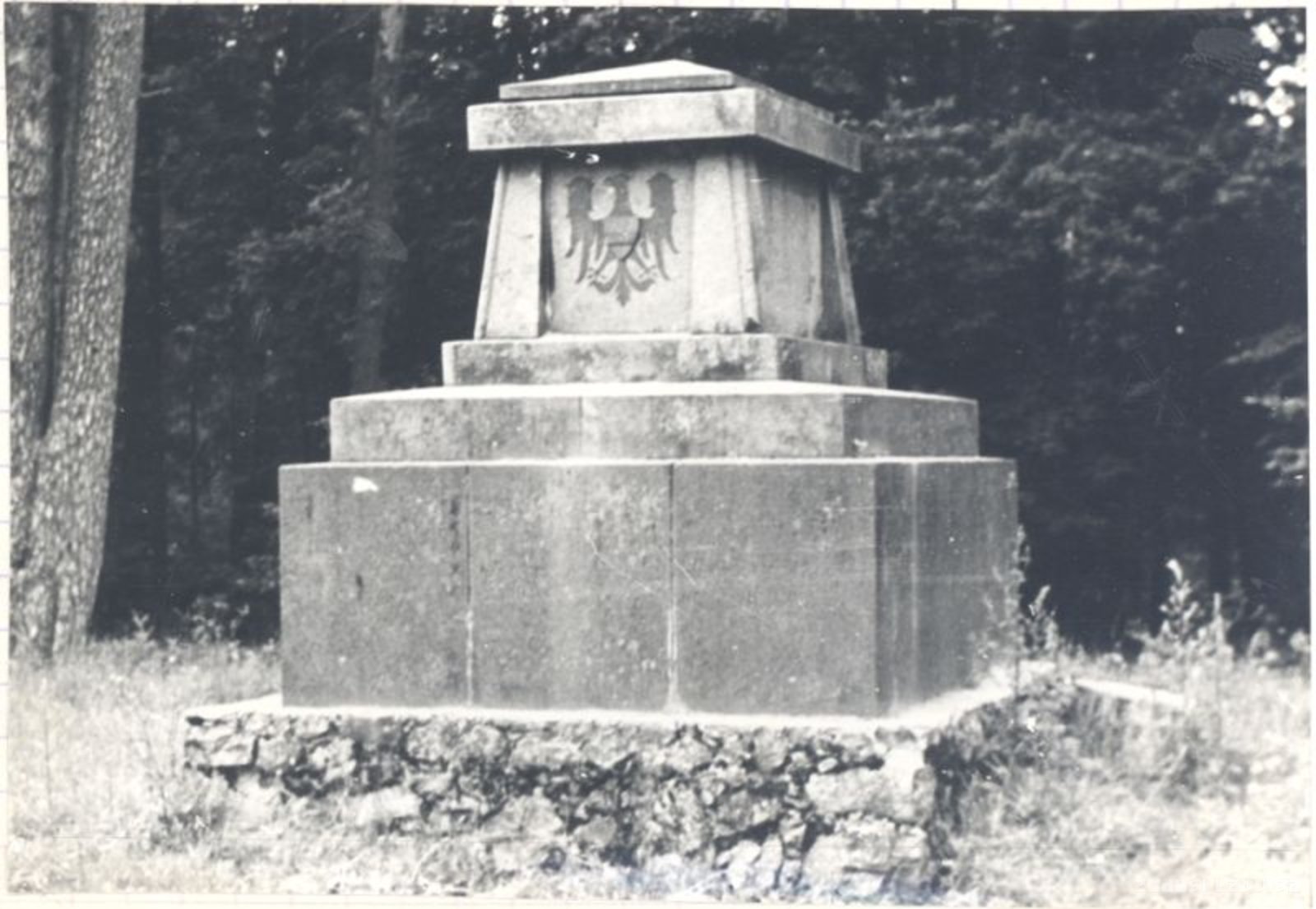 Piemineklis ar bijušā Kazdangas barona Manteifeļa emblēmām - ērgļiem. Granīta Piemineklis pie skolas cēlis Kazdangas pagasts kā pateicību. Pēc iedzīvotāju nostāstiem Manteifels licis iedzīvotājiem uzcelt šo pieminekli un uzrakstīt attiecīgu tekstu, it kā iedzīvotāji to cēluši par pateicību viņam