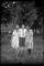Trīs jaunas sievietes un stirna mājas pagalmā. : Fotonegatīvs