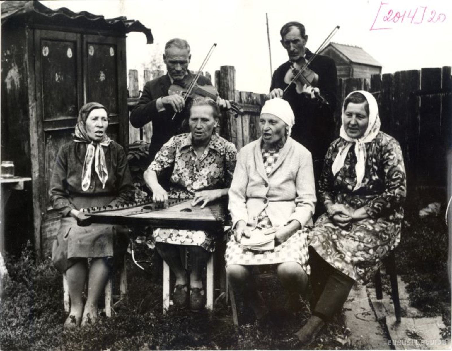 Latvijas Folkloras krātuves (tagad nosaukums Latvijas Universitātes Literatūras folkloras un mākslas institūts) folkloras materiālu vākšanas ekspedīcija apmeklē muzikālās pašdarbības dalībniekus Krasnojarskas novada Ujāru rajona Suhonojas ciemā. Latvieši - Otīlija Briede, Alma Egle, Marta Sausiņa, Minna Rasa /cītara/, Artūrs Alksnis /vijole/, Mārtiņš Egle /vijole/