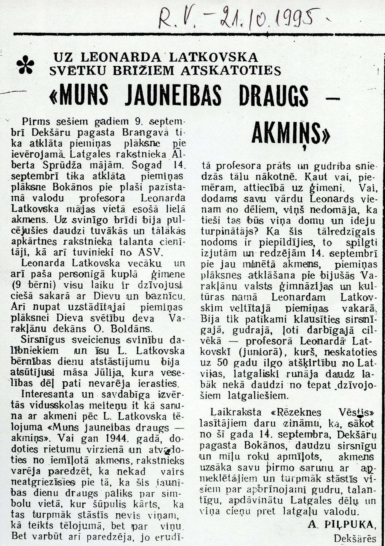 Kopija no laikraksta " Rēzeknes vēstis" (21.10.1995.)