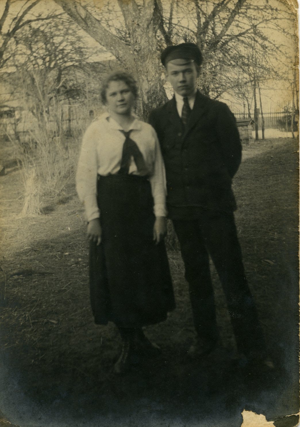 Satura apraksts: Skolotāja L. Jurkovska (Zīriņa) ar brāli Rūdolfu Zīriņu.Viena fotogrāfija- ārskats, otra- portrets, iekšskats.