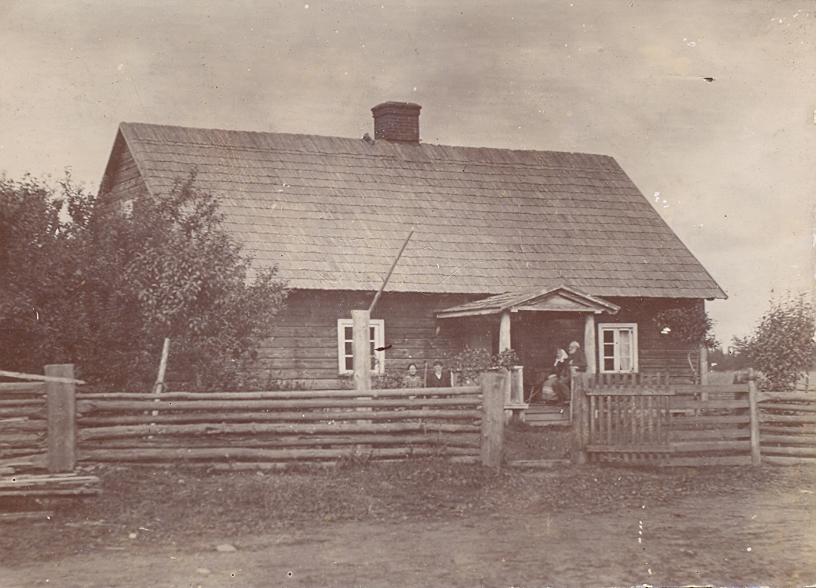Satura apraksts: Dundagas pagasta Dingu māju ērbeģis, celts 19. gs. 90. gados saimniekam Fricim Adamovičam pēc mājas nodošanas dēlam. Uz lieveņa sēž Līze un Fricis Adamoviči. Ērbeģis nojaukts ap 1979. gadu. Šajās mājās ciemojies arī Krišjānis Barons pie savas māsas Līzes (Friča Adamoviča sieva).