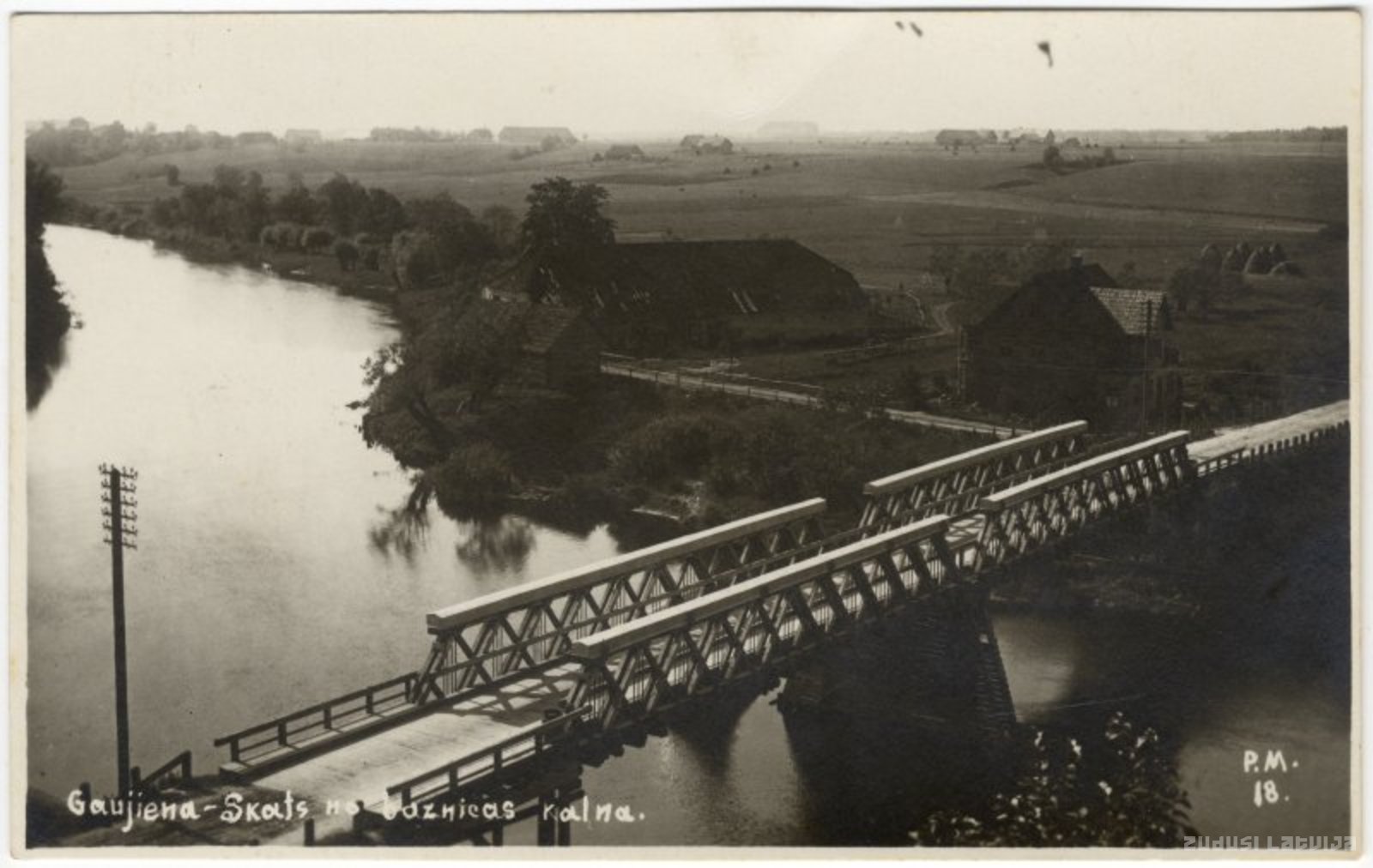 Gaujiena. Skats no Baznīcas kalna uz tiltu pār Gauju