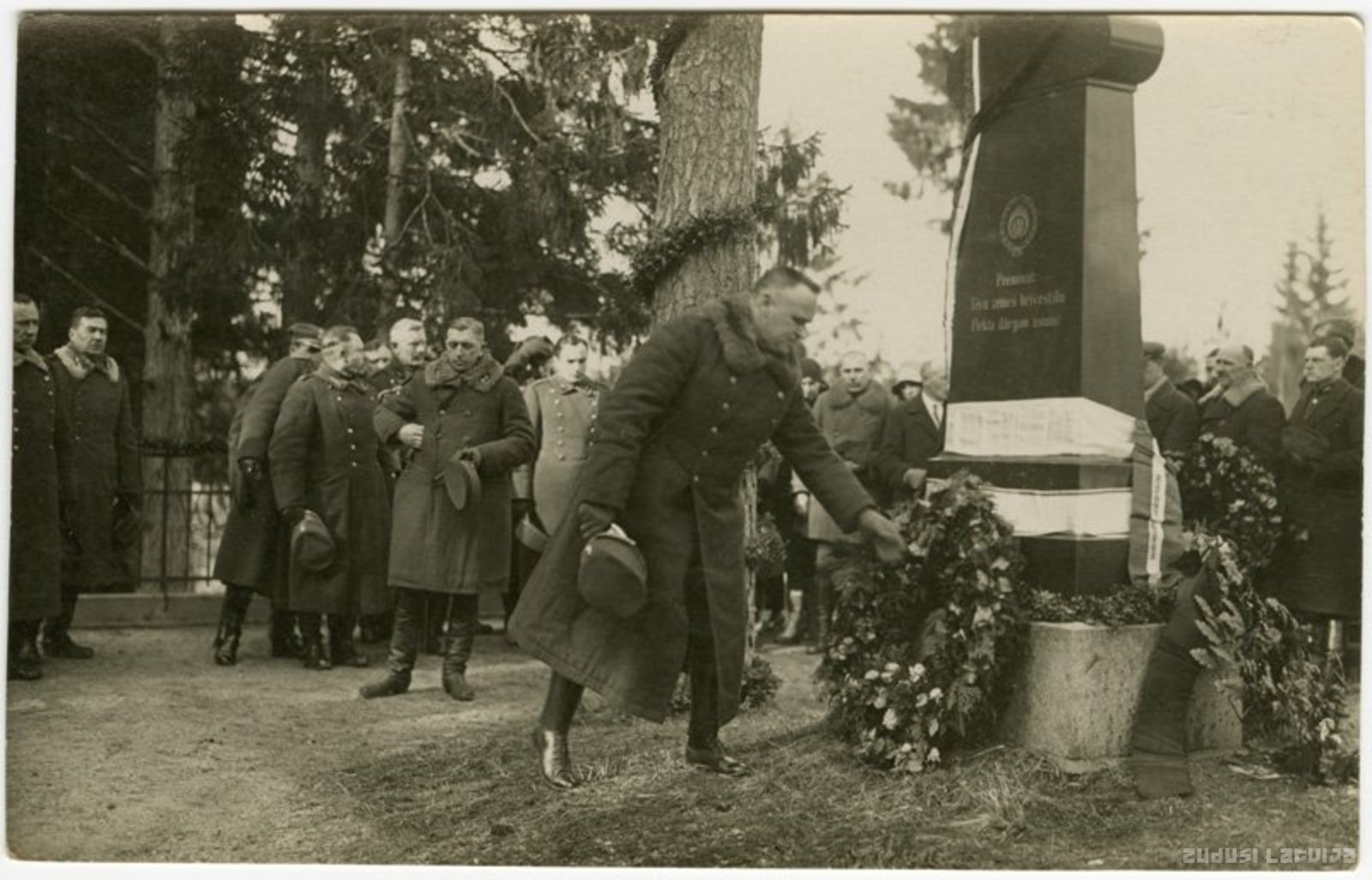 Piemineklis pulkvedim Oskaram Kalpakam no melnā Zviedrijas granīta tika uzcelts blakus priedei, pie kuras viņš saņēma nāvīgo ievainojumu. Piemineklis atklāts 1922. gada 3. septembrī