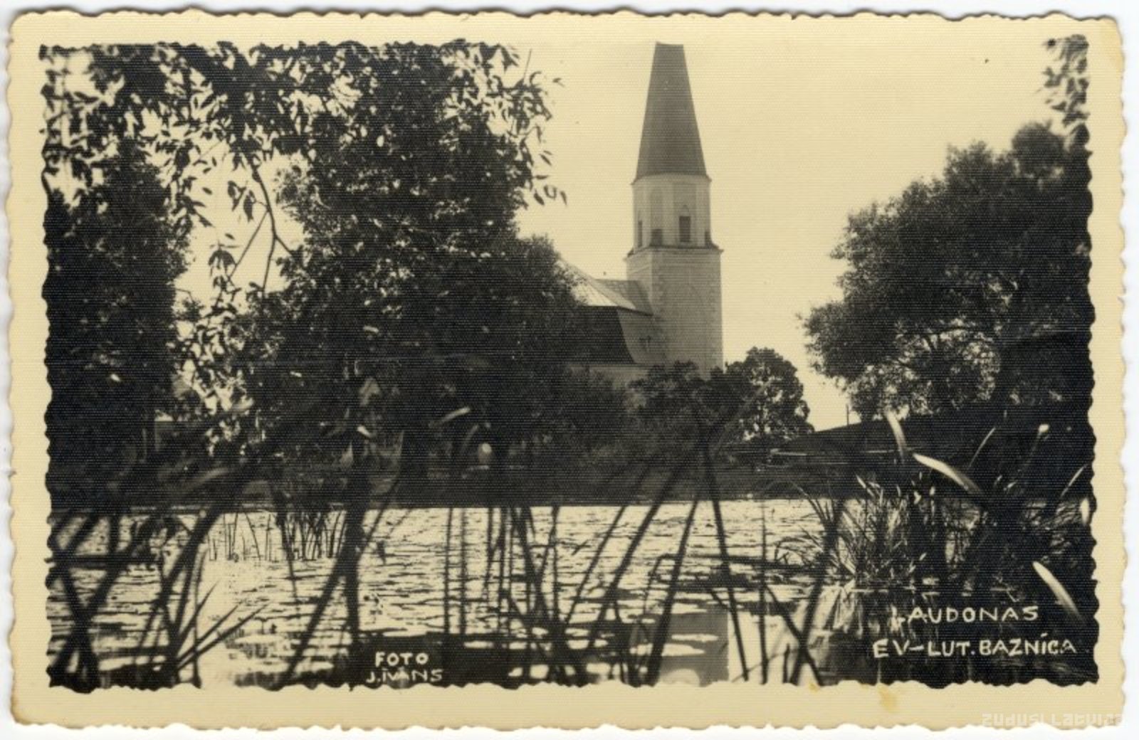 Pirmā luterāņu baznīca Ļaudonā uzcelta 1503.gadā. 1669.gadā uzcelta jauna baznīca, ko 1703.gadā nopostīja krievu karaspēks. 1732.gadā uzcelta atkal jauna baznīca. Mūra baznīca uzcelta 1817. gadā, ievētīta 1821. gadā. Tā bija celta no laukakmeņiem, ērģeles būvētas Vācijā. Otrā pasaules kara laikā 1944.gada vasarā baznīca cieta ugunsgrēkā