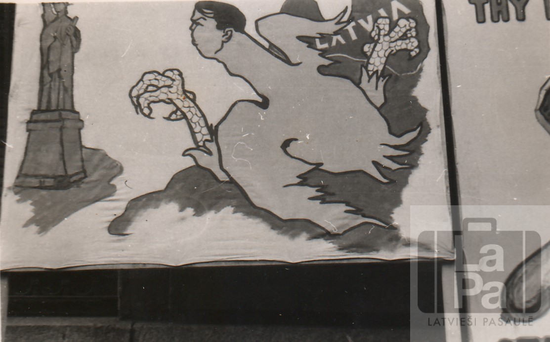 Latvieši piedalās tradicionālā "Lojalitātes Dienas" parādē Ņujorkā, ASV, 1953. gada 2. maijā. Parādes dalībnieki pauda prasību pēc Padomju Savienības okupēto zemju atbrīvošanas, ieskaitot latviešu grupu, kurā bija aptuveni 300 dalībnieku. Grupa nesa iespaidīgus plakātus, ieskaitot H. Gricēviča darinātu plakātu ar samocītu seju, uz tā uzraksts "Komunisms šodien iznīcina latviešu tautu, bet rīt tas var notikt arī jums". Lielo plakātu ar lāci uz samītām Baltijas valstīm darināja E. Markēvičs.
