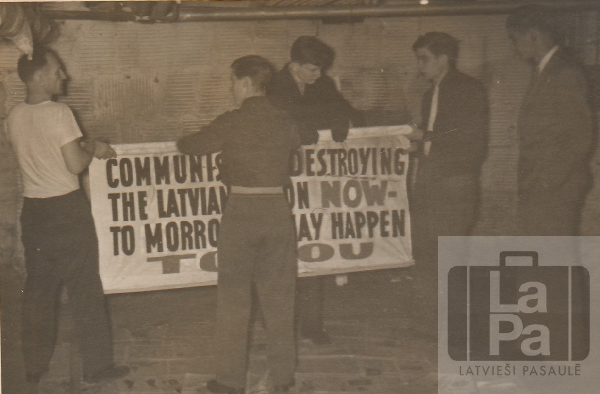 Latvieši piedalās tradicionālā "Lojalitātes Dienas" parādē Ņujorkā, ASV, 1953. gada 2. maijā. Parādes dalībnieki pauda prasību pēc Padomju Savienības okupēto zemju atbrīvošanas, ieskaitot latviešu grupu, kurā bija aptuveni 300 dalībnieku. Grupa nesa iespaidīgus plakātus, ieskaitot H. Gricēviča darinātu plakātu ar samocītu seju, uz tā uzraksts "Komunisms šodien iznīcina latviešu tautu, bet rīt tas var notikt arī jums". Lielo plakātu ar lāci uz samītām Baltijas valstīm darināja E. Markēvičs.