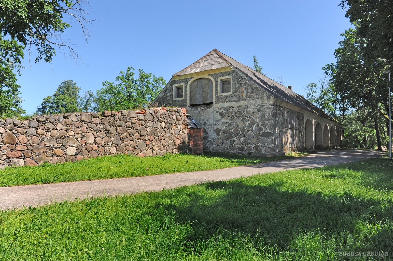 Litenes muiža. Stallis ar akmens žoga fragmentu