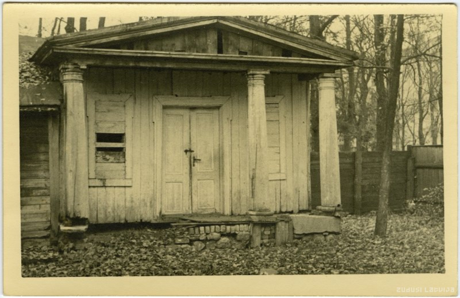 Jelgava. Jura Mātera iela 25. Neliels koka templis ar kolonnām