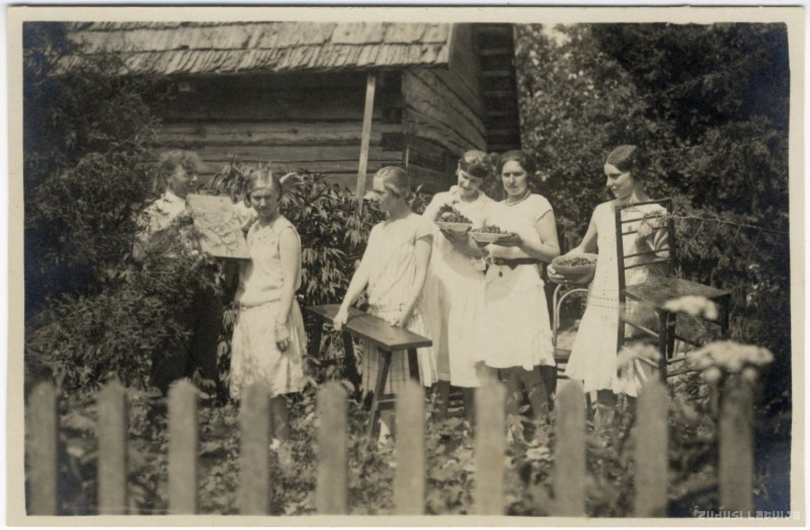 Rembates pagasts. "Ogresziedu" māju sievietes ar ķiršu ražu
