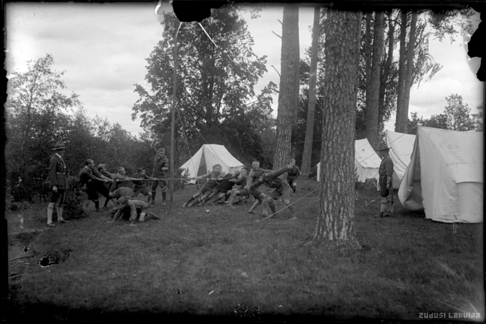 Virves vilkšanas sacensības skautu nometnē
