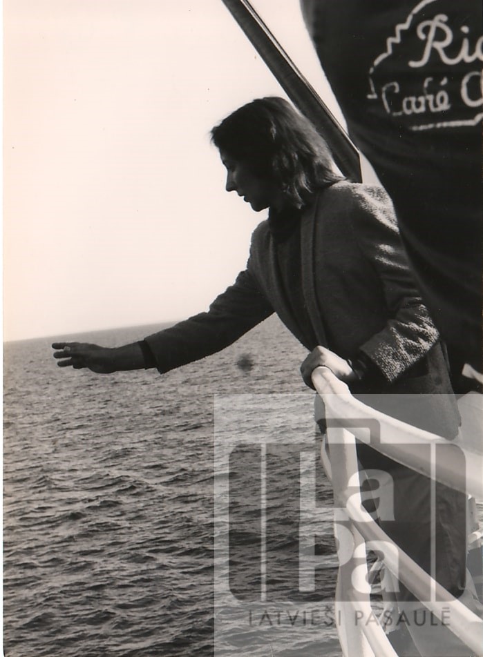 Sieviete met ziedus jūrā Baltijas Brīvības un miera kuģa brauciena laikā.