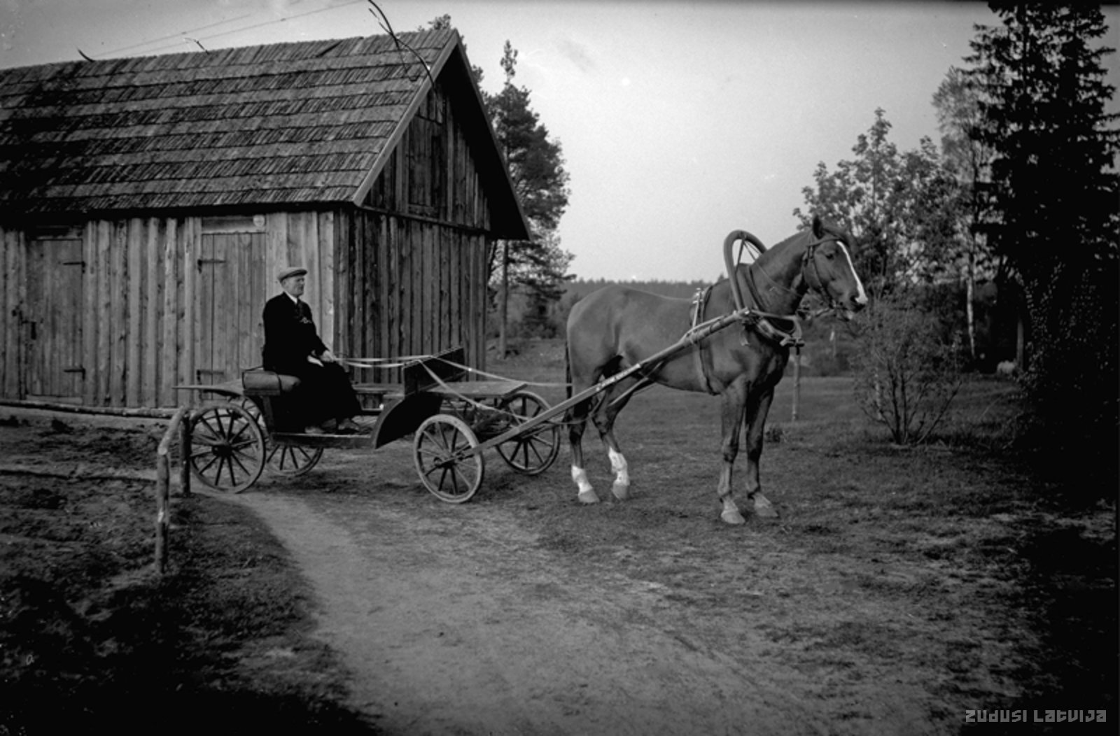 Vīrietis zirga pajūgā