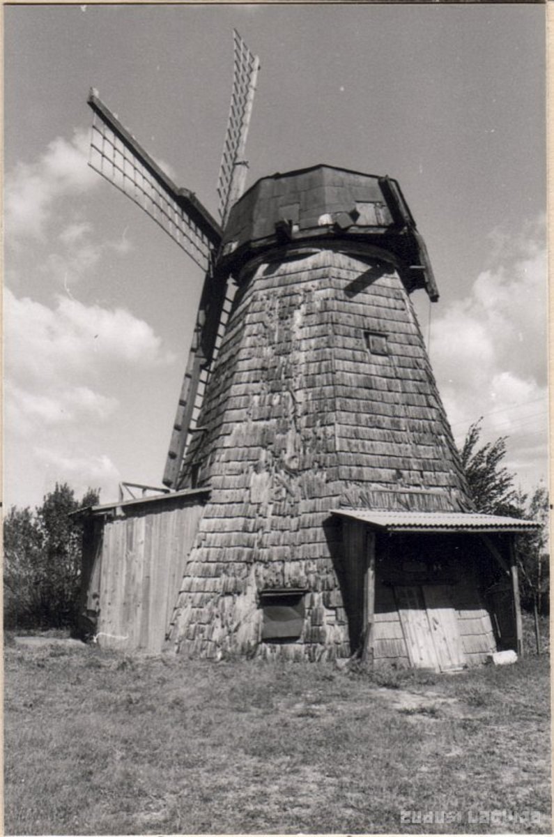 Vējdzirnavas celtas 20. gadsimta sākumā. To pamatu būvē izmantoti laukakmeņi, bet ārsienas būvētas no lūbiņām (koka konstrukcija).
