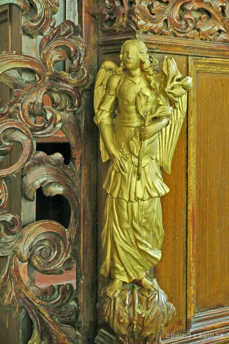 Kandavas luterāņu baznīca. Patronāta sola kokgriezums