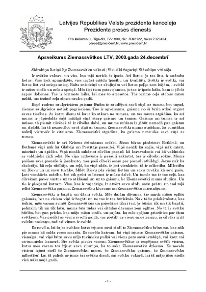 Apsveikums Ziemassvētkos LTV, 2000.gada 24.decembrī