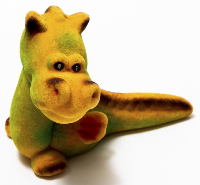 Gumijas rūpnīca "Dobele". Rotaļlieta "Pūķītis - dzelteni zaļš ar brūnu un sarkanu tonējumu". 1986-1987.gads