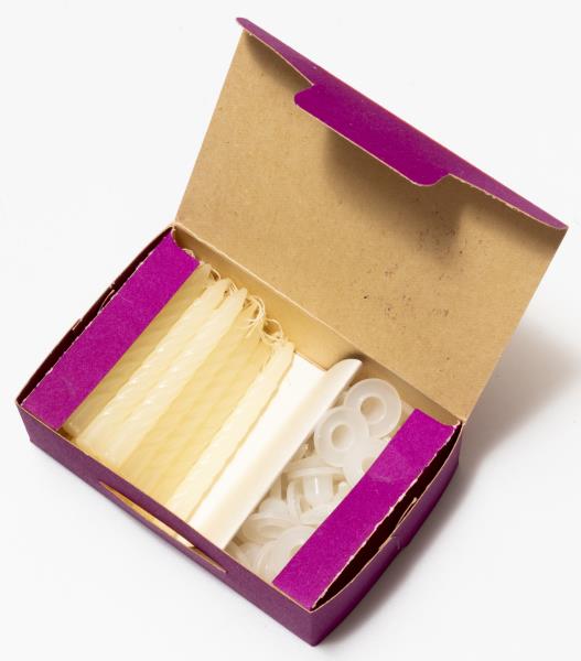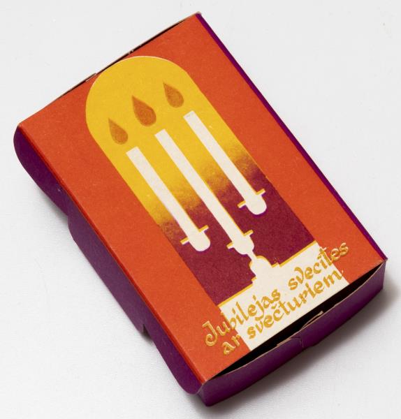 Gumijas rūpnīca "Dobele". Kartona kārbiņa "Jubilejas svecītes ar svečturiem". 1991-1992.gads