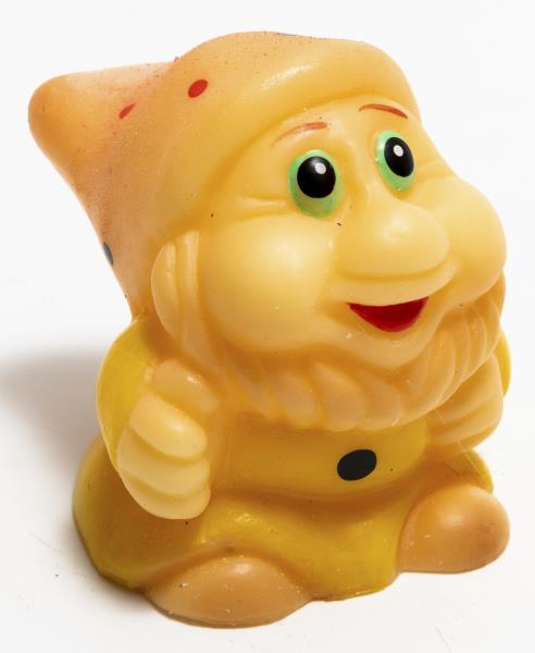 Gumijas rūpnīca "Dobele". Rotaļlieta "Rūķītis - sarkana cepurīte un dzeltens mētelis ar melnu pogu". 1991-1992.gads